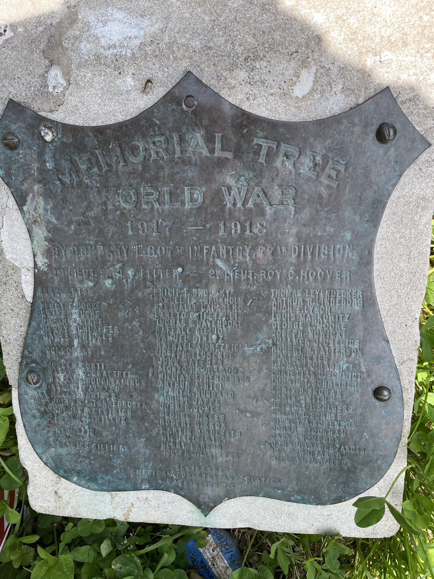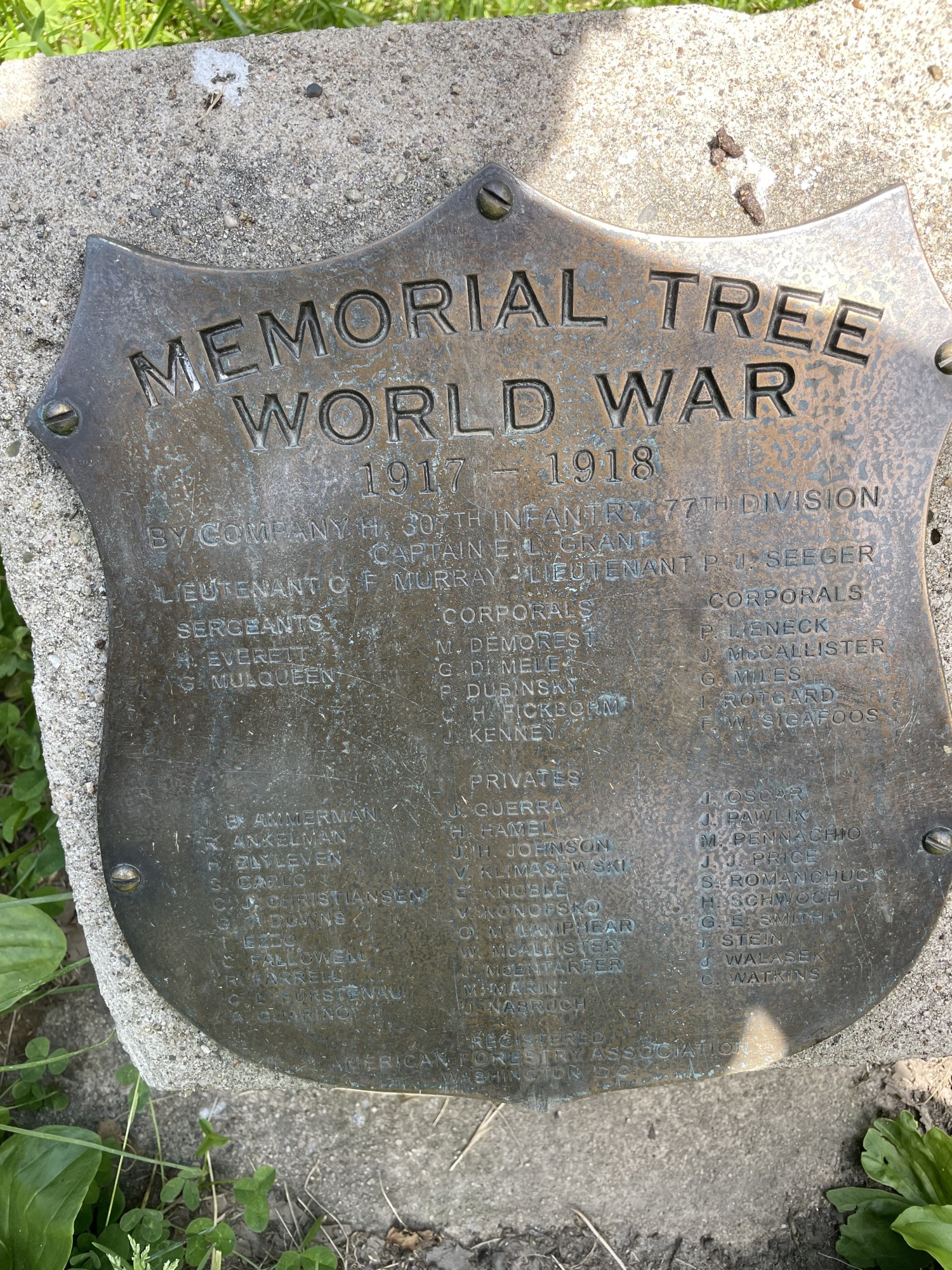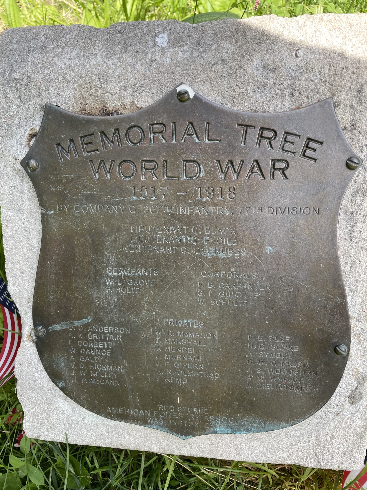 MEMORIAL TREE WORLD WAR (1817-1818) "D" 307TH INFANTRY